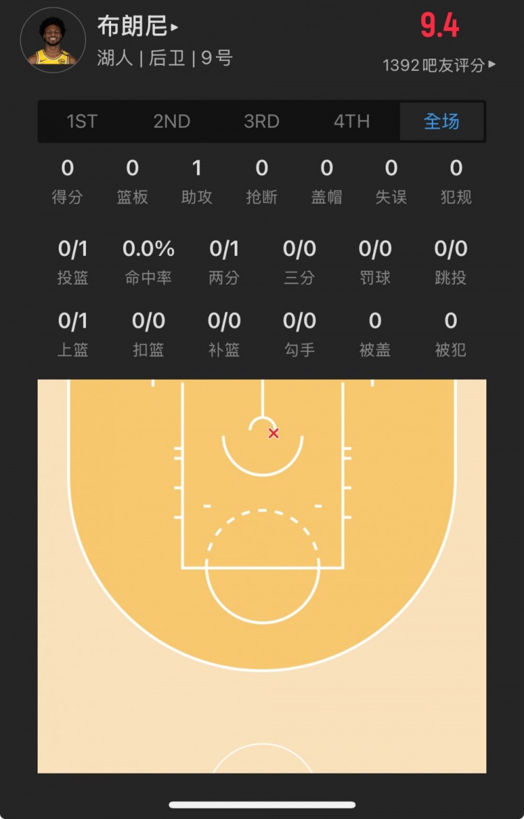 湖人55號(hào)秀 布朗尼-詹姆斯 登場(chǎng)1.7分鐘