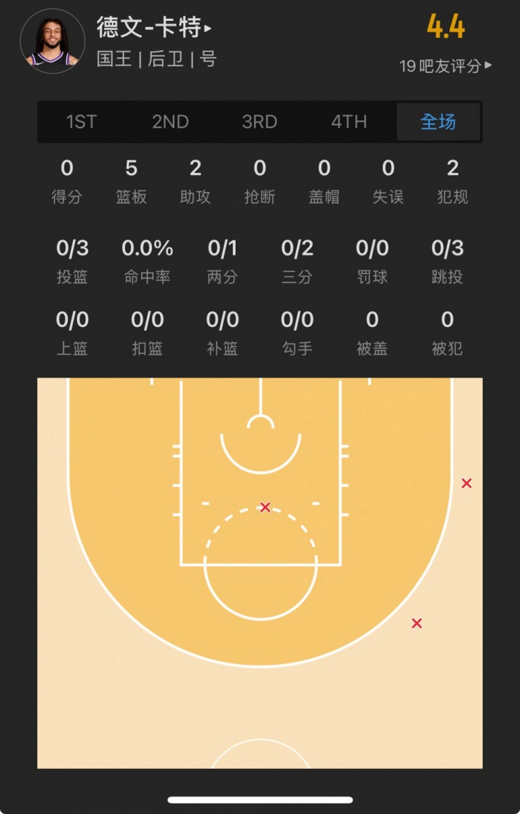 國(guó)王13號(hào)秀 德文-卡特 登場(chǎng)10.8分鐘