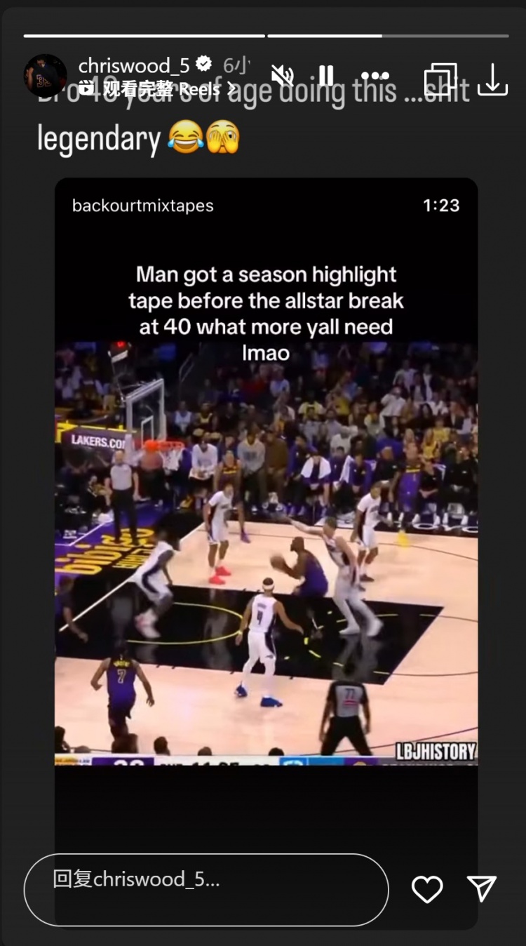 發(fā)布時間:2025年02月06日 08:57點擊:欄目:籃球新聞 除特別注明外,本站所有內(nèi)容均為九球直播整理排版,轉(zhuǎn)載請注明出處:伍德轉(zhuǎn)發(fā)詹姆斯賽季高光:老哥40歲了還能這樣打 傳奇 本文標簽: 籃球 nba 湖人 詹姆斯