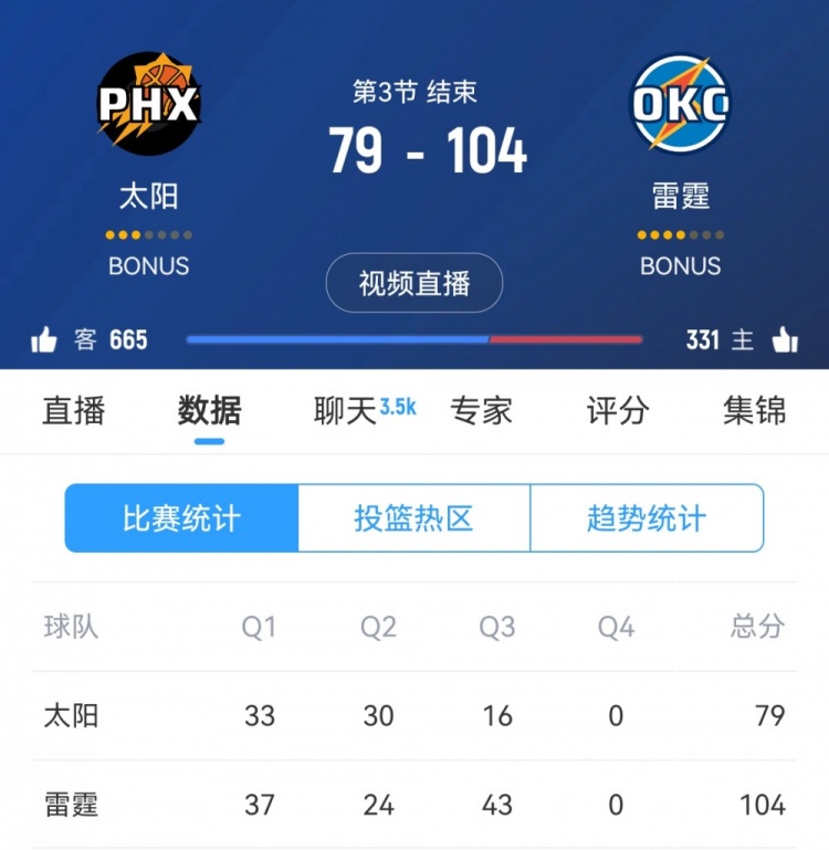 發(fā)布時間:2025年02月06日 12:55點擊:欄目:籃球新聞 2月6日訊 NBA常規(guī)賽,雷霆三節(jié)打完104-79領先太陽。第三節(jié),雷霆攻防兩端壓制對手,單節(jié)43-16凈勝太陽27分,三節(jié)打完雷霆領先25分。雷霆核心亞歷山大三節(jié)轟下46分。 除特別注明外,本站所有內容均為九球直播整理排版,轉載請注明出處:殘暴!雷霆第三節(jié)43-16狂勝太陽27分 帶著25分優(yōu)勢進入末節(jié) 本文標簽: nba 籃球 雷霆 亞歷山大