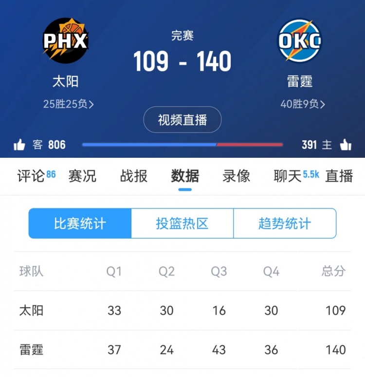 發(fā)布時(shí)間:2025年02月06日 13:56點(diǎn)擊:欄目:籃球新聞 2月6日訊 NBA常規(guī)賽,太陽(yáng)109-140大比分不敵雷霆。上半場(chǎng),太陽(yáng)還以63-61領(lǐng)先雷霆,但下半場(chǎng)命中率驟降,全隊(duì)拿到46分,尤其第三節(jié)16-43凈負(fù)27分,最終31分慘敗對(duì)手。 除特別注明外,本站所有內(nèi)容均為九球直播整理排版,轉(zhuǎn)載請(qǐng)注明出處:后程乏力!太陽(yáng)下半場(chǎng)命中率驟降 最終31分慘敗雷霆 本文標(biāo)簽: nba 籃球 太陽(yáng) 雷霆