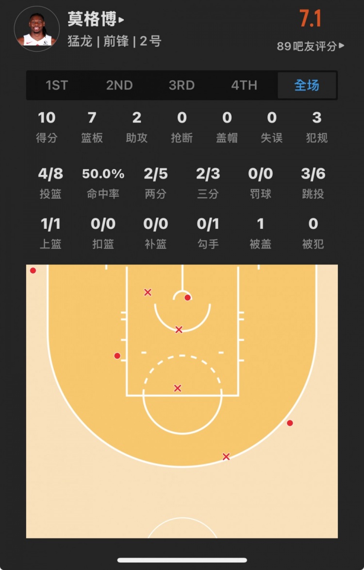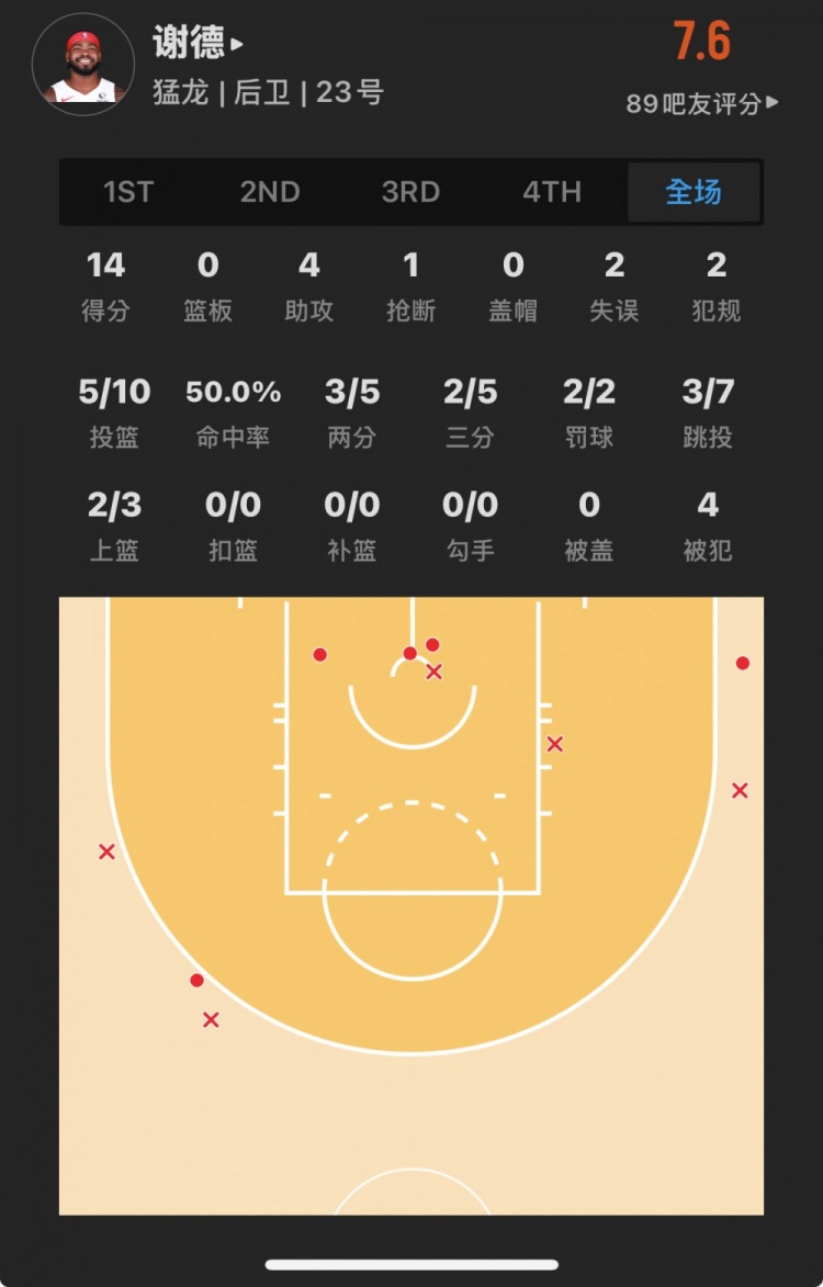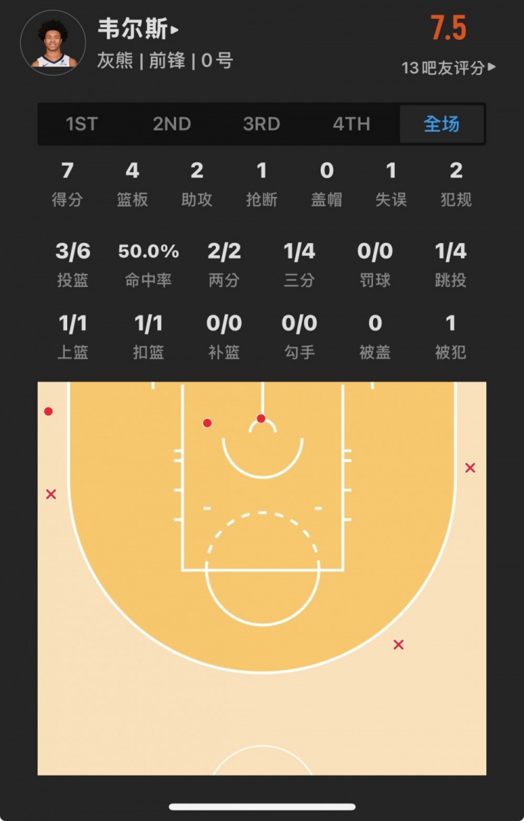 灰熊39號(hào)秀 杰倫-韋爾斯 登場(chǎng)21.4分鐘