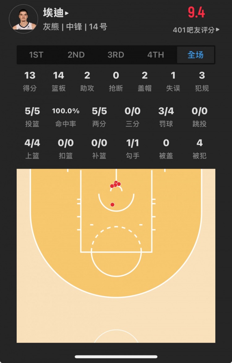 灰熊9號(hào)秀 扎克-埃迪 登場(chǎng)24.7分鐘