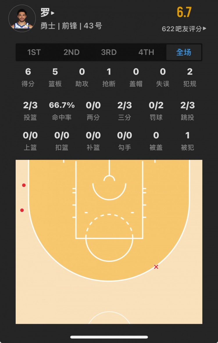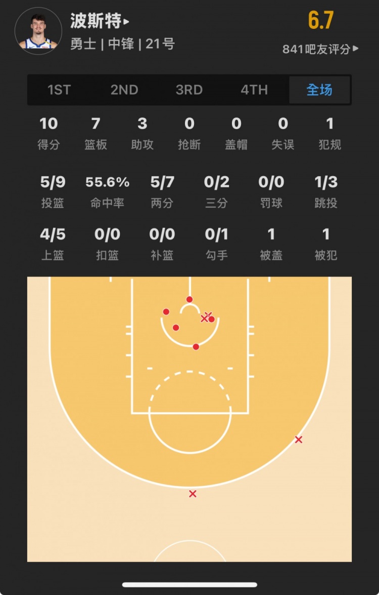 勇士52號(hào)秀 昆滕-波斯特 登場(chǎng)24.7分鐘