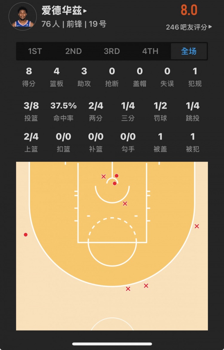 76人41號(hào)秀 阿德姆-博納 登場(chǎng)17.5分鐘