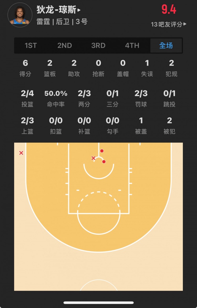 雷霆26號(hào)秀 狄龍-瓊斯 登場(chǎng)6.5分鐘