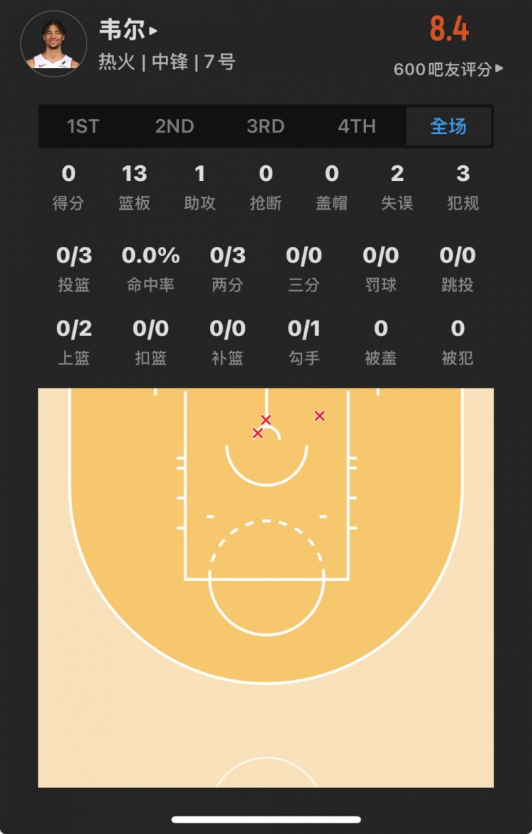 熱火15號(hào)秀 克雷爾-韋爾 登場(chǎng)18.8分鐘