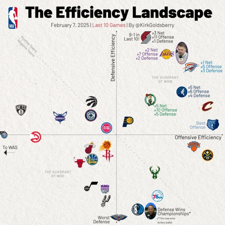 發(fā)布時間:2025年02月07日 23:25點擊:欄目:籃球新聞 橫軸代表進攻效率、縱軸代表防守效率繪圖者&數(shù)據(jù)專家Kirk Goldsberry為獨行俠標注“防守贏得總冠軍” 除特別注明外,本站所有內(nèi)容均為九球直播整理排版,轉載請注明出處:近10場攻防湖人均前7 火勇攻守皆弱 獨行俠“防守贏得總冠軍” 本文標簽: 籃球 nba 東部 76人 雄鹿 凱爾特人 籃網(wǎng) 猛龍 黃蜂 騎士 步行者 活塞 熱火 老鷹 公牛 奇才 魔術 尼克斯 西部 湖人 勇士 太陽 火箭 獨行俠 快船 鵜鶘 開拓者 灰熊 森林狼 爵士 掘金 馬刺 國王 雷霆