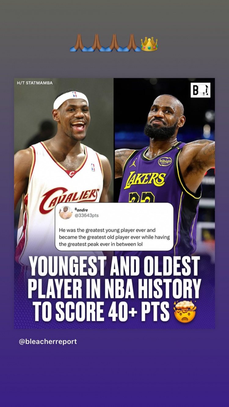 這場(chǎng)比賽過后,詹姆斯(40歲38天)超越喬丹(40歲零4天)成為NBA歷史上單場(chǎng)砍下40+最老的球員。