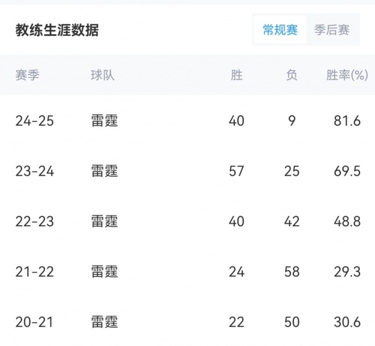 除特別注明外,本站所有內(nèi)容均為九球直播整理排版,轉(zhuǎn)載請(qǐng)注明出處:相信過程!雷霆主帥每季執(zhí)教勝率:頭兩季30%→49%→70%→82%