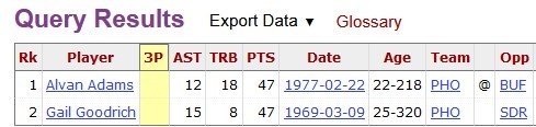 據(jù)統(tǒng)計(jì),太陽隊(duì)史僅有3名球員打出過至少47分6板11助的數(shù)據(jù),前兩人分別是阿爾萬-亞當(dāng)斯和蓋爾-古德里奇。