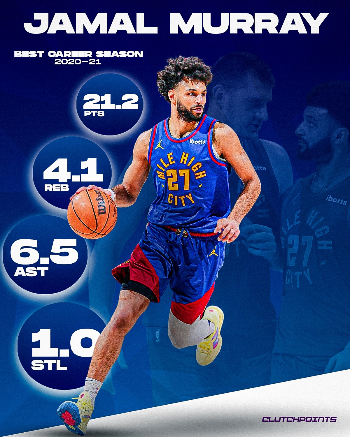穆雷20-21賽季場均21.2分4.1籃板6.5助攻1.0搶斷