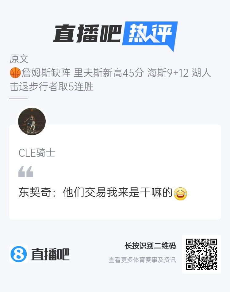 發(fā)布時(shí)間:2025年02月09日 08:56點(diǎn)擊:欄目:籃球新聞 除特別注明外,本站所有內(nèi)容均為九球直播整理排版,轉(zhuǎn)載請(qǐng)注明出處:詹姆斯42分!里夫斯45分!77:他們交易我來干嘛? 本文標(biāo)簽: 籃球 nba 湖人 詹姆斯 東契奇