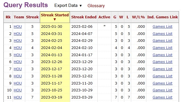 據(jù)統(tǒng)計(jì),火箭隊(duì)上一次吃到6連敗甚至更長(zhǎng),還要追溯到2023年3月19日至3月29日,當(dāng)時(shí)他們苦吞了7連?。?/p>