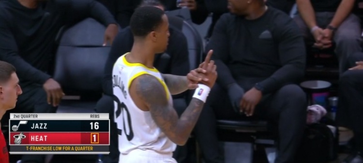 比賽第二節(jié),爵士搶下16個籃板,而熱火全隊只拿到了1個板,這也追平了隊史單節(jié)籃板的最低紀(jì)錄。