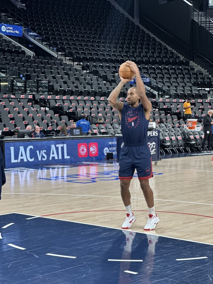 多位快船隨隊記者曬照,萊昂納德目前已經(jīng)來到球場進(jìn)行熱身。
