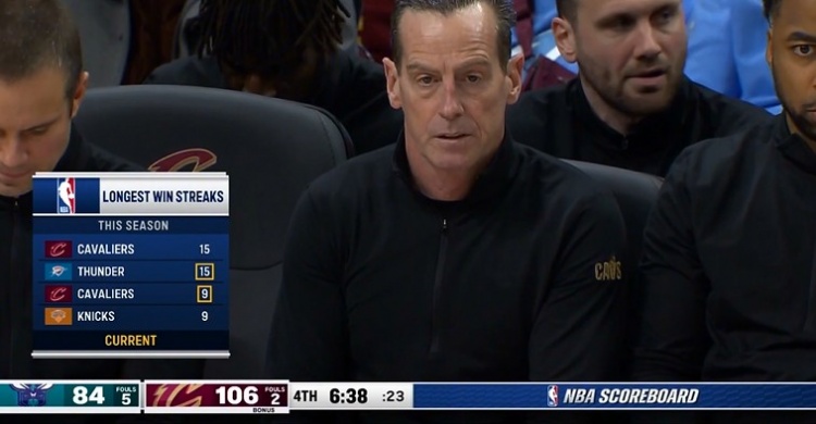 發(fā)布時(shí)間:2025年01月06日 09:50點(diǎn)擊:欄目:籃球新聞 1月6日訊 NBA常規(guī)賽,騎士對陣黃蜂。比賽中轉(zhuǎn)播方給出一組數(shù)據(jù),本賽季至今的連勝場數(shù)前四如下:1、騎士,15連勝2、雷霆,15連勝(進(jìn)行中)3、騎士,9連勝(進(jìn)行中)4、尼克斯,9連勝 除特別注明外,本站所有內(nèi)容均為九球直播整理排版,轉(zhuǎn)載請注明出處:本賽季最長連勝場數(shù)榜:前四名騎士獨(dú)占其二 目前9連勝 本文標(biāo)簽: nba 籃球 雷霆 騎士 尼克斯