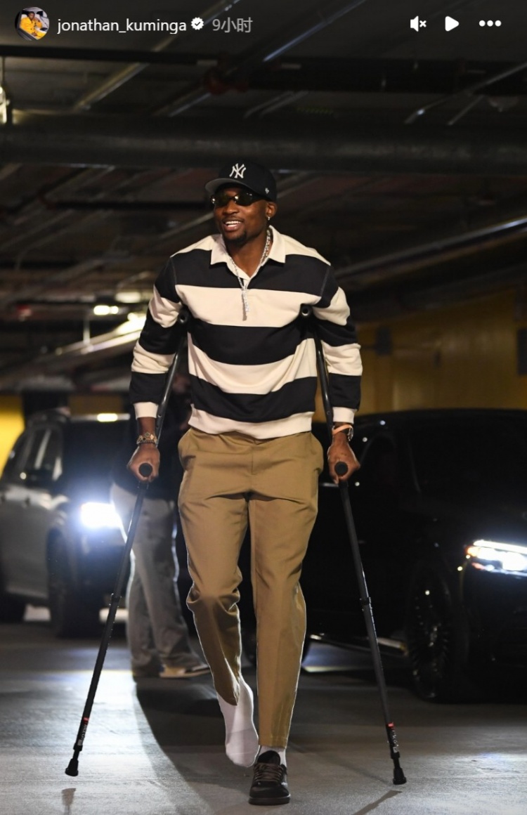 庫明加在INS曬出了自己拄著拐杖的照片。