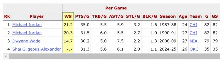 發(fā)布時(shí)間:2025年01月07日 10:16點(diǎn)擊:欄目:籃球新聞 1月7日訊 本賽季至今亞歷山大場均31.3分5.6籃板6.1助攻2搶斷1.1蓋帽。NBA加拿大官方曬出數(shù)據(jù)顯示,亞歷山大是NBA歷史上第三位單賽季場均至少30分5籃板5助攻2搶斷1蓋帽的球員,前兩位是喬丹(2次)和韋德。 除特別注明外,本站所有內(nèi)容均為九球直播整理排版,轉(zhuǎn)載請(qǐng)注明出處:SGA賽季場均至少30分5板5助2斷1帽 歷史第三人&比肩喬丹和韋德 本文標(biāo)簽: 籃球 nba 雷霆 亞歷山大 韋德 喬丹
