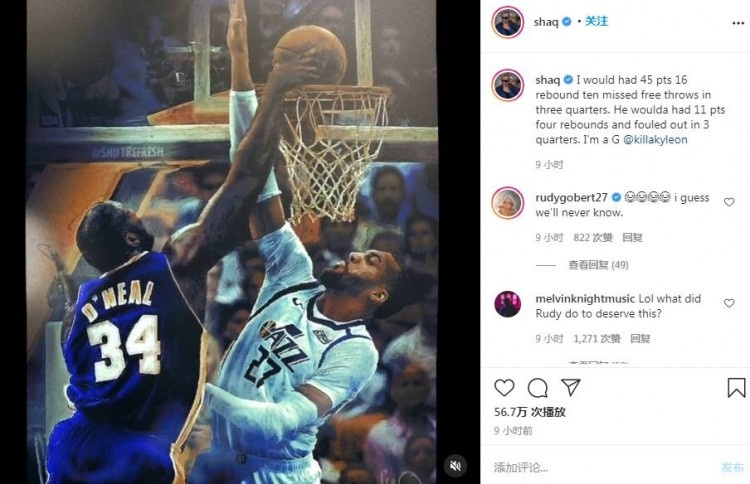 隨后奧尼爾曬出一張自己和戈貝爾交手的合成照,并開腦洞:“我會(huì)在三節(jié)在投丟10個(gè)罰球的情況下砍45+16,他三節(jié)11分4籃板六犯離場。”