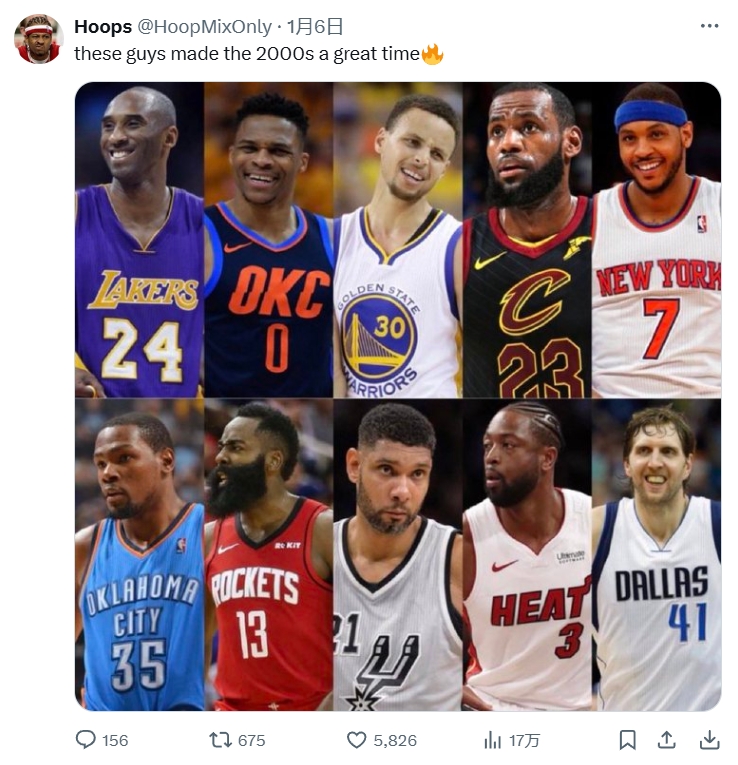 發(fā)布時(shí)間:2025年01月07日 22:50點(diǎn)擊:欄目:籃球新聞 除特別注明外,本站所有內(nèi)容均為九球直播整理排版,轉(zhuǎn)載請(qǐng)注明出處:認(rèn)可嗎?美媒:這些球星讓21世紀(jì)成為了一個(gè)偉大的年代! 本文標(biāo)簽: 籃球 nba 湖人 勇士 太陽 火箭 詹姆斯 杜蘭特 庫里 快船 哈登 掘金 威少 雷霆 尼克斯 安東尼 科比 鄧肯 韋德 熱火 諾維茨基 獨(dú)行俠 小牛