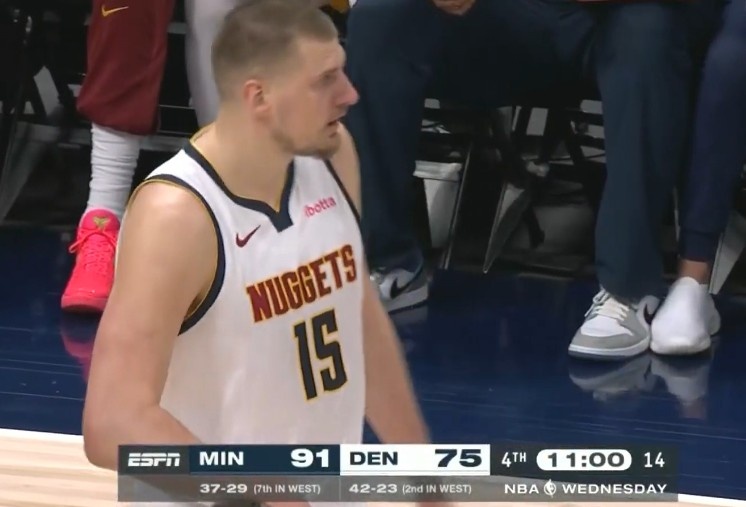 第四節(jié)還剩10分33秒時(shí),約基奇已經(jīng)出戰(zhàn)32分鐘48秒,21投12中,三分6投2中,罰球7罰5中,得到31分7籃板4助攻1搶斷。