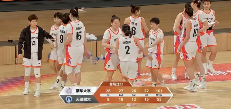 末節(jié)決戰(zhàn),夏榮再中兩分,但李嘉琳三分也開(kāi)和給出回應(yīng),雙方命中率都有下降。楊雅婷三分還能扔進(jìn),王鏝淋連續(xù)取分回應(yīng)幫助清華大學(xué)保持住40分以上領(lǐng)先。隨后雙方繼續(xù)拉鋸戰(zhàn),劉琦和李嘉琳三分還能連續(xù)命中,清華牢牢掌握住大比分領(lǐng)先,最終清華大學(xué)101-55大勝天津財(cái)大。