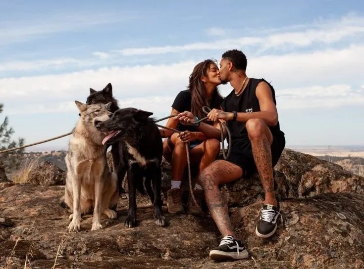 很快,人們就知道了他的夢想是什么。兩個月后,安佳麗在網(wǎng)上曝出了自己和蘭姆的合照官宣戀情,兩人卿卿我我,身邊還有三匹狗化的狼。可以想象,至少在發(fā)展聯(lián)盟期間,蘭姆就和安佳麗墜入了愛河。