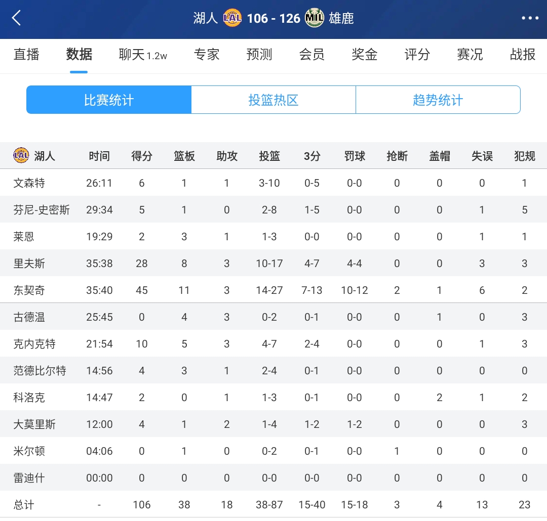 發(fā)布時間:2025年03月14日 10:58點(diǎn)擊:欄目:籃球新聞 03月14日訊 NBA常規(guī)賽,湖人客場106-126不敵雄鹿。此役,湖人僅有三人得分上雙,其中東契奇45分,里夫斯28分,克內(nèi)克特10分。 除特別注明外,本站所有內(nèi)容均為九球直播整理排版,轉(zhuǎn)載請注明出處:CBA外援的既視感?湖人僅三人得分上雙 其中克內(nèi)克特10分 本文標(biāo)簽: 籃球 nba 湖人 東契奇