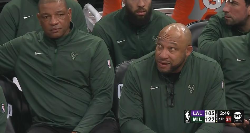 發(fā)布時(shí)間:2025年03月14日 10:58點(diǎn)擊:欄目:籃球新聞 除特別注明外,本站所有內(nèi)容均為九球直播整理排版,轉(zhuǎn)載請(qǐng)注明出處:湖人投降!鏡頭對(duì)準(zhǔn)雄鹿教練席:老里愜意哈姆爽嚼口香糖 本文標(biāo)簽: 籃球 nba 湖人 雄鹿