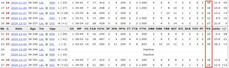 即將邁入40歲高齡的詹姆斯,終于在本賽季顯露了些許老態(tài)。雖然曾一度喊出“打滿常規(guī)賽”的口號,但持續(xù)作戰(zhàn)下的力有未逮還是讓他放棄了這個想法。本賽季詹姆斯場均得分22.6分,這是自新秀賽季以來的最低分。最近10場比賽,詹姆斯有7場得分不足20分。