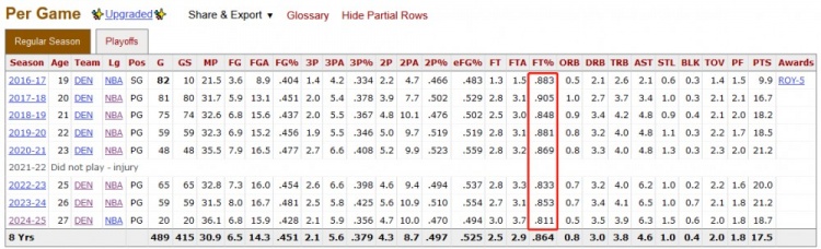 作為球隊的二當家,穆雷本賽季的火力輸出是不夠的,他場均比上賽季多了接近5分鐘的時間,得分少了接近4分。不僅如此,他本賽季單場最高得分僅為28,而且他的罰球命中率也跌到了生涯新低。