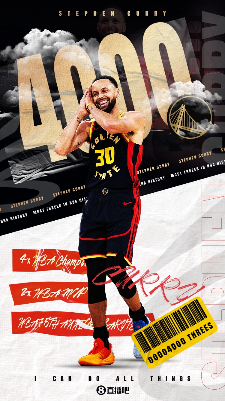 - 直播吧海報(bào)庫(kù)里解鎖4000記三分見(jiàn)證神跡太庫(kù)啦??!