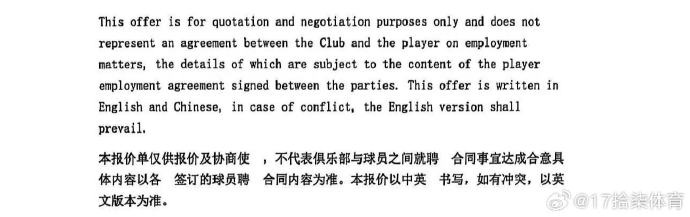 二 多家俱樂部對哈雷爾感興趣并進(jìn)行了談判,其間另一家中方經(jīng)紀(jì)公司在浙江稠州銀行俱樂部與哈雷爾的談判過程中簽訂了一份報(bào)價(jià)單,其中明確約定“該報(bào)價(jià)單僅供報(bào)價(jià)和協(xié)商使用,不代表球員與俱樂部完成聘用合同簽約?!薄@也是浙江稠州銀行俱樂部多次公告中含糊其辭提及的“簽約”。最后,在多家俱樂部中談判協(xié)商中球員哈雷爾于二月十日選擇了簽約新疆廣匯俱樂部,三方按中國籃協(xié)和CBA公司要求簽訂了標(biāo)準(zhǔn)合同并在中國籃協(xié)完成了經(jīng)紀(jì)人備案。