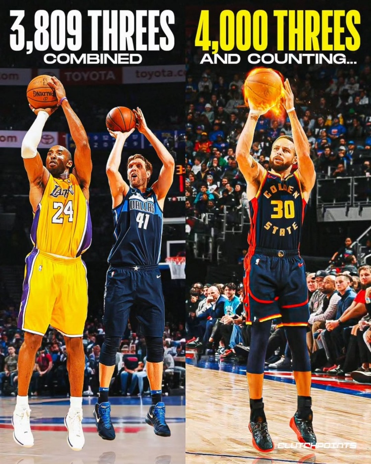 - 科比諾維茨基生涯合計(jì)投中3809記三分 合起來不敵庫里的4000記
