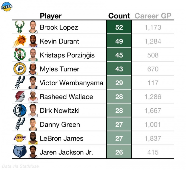 發(fā)布時(shí)間:2025年03月14日 19:06點(diǎn)擊:欄目:籃球新聞 大洛今天對(duì)陣湖人9中8,三分4中3,貢獻(xiàn)23分4板5助攻4蓋帽 除特別注明外,本站所有內(nèi)容均為九球直播整理排版,轉(zhuǎn)載請(qǐng)注明出處:大洛第52次3+帽3+三分 歷史第1 文班僅用117場(chǎng)就29次 位列第5 本文標(biāo)簽: 籃球 nba 雄鹿 湖人 詹姆斯 太陽(yáng) 杜蘭特 馬刺 文班亞馬 步行者 凱爾特人 灰熊