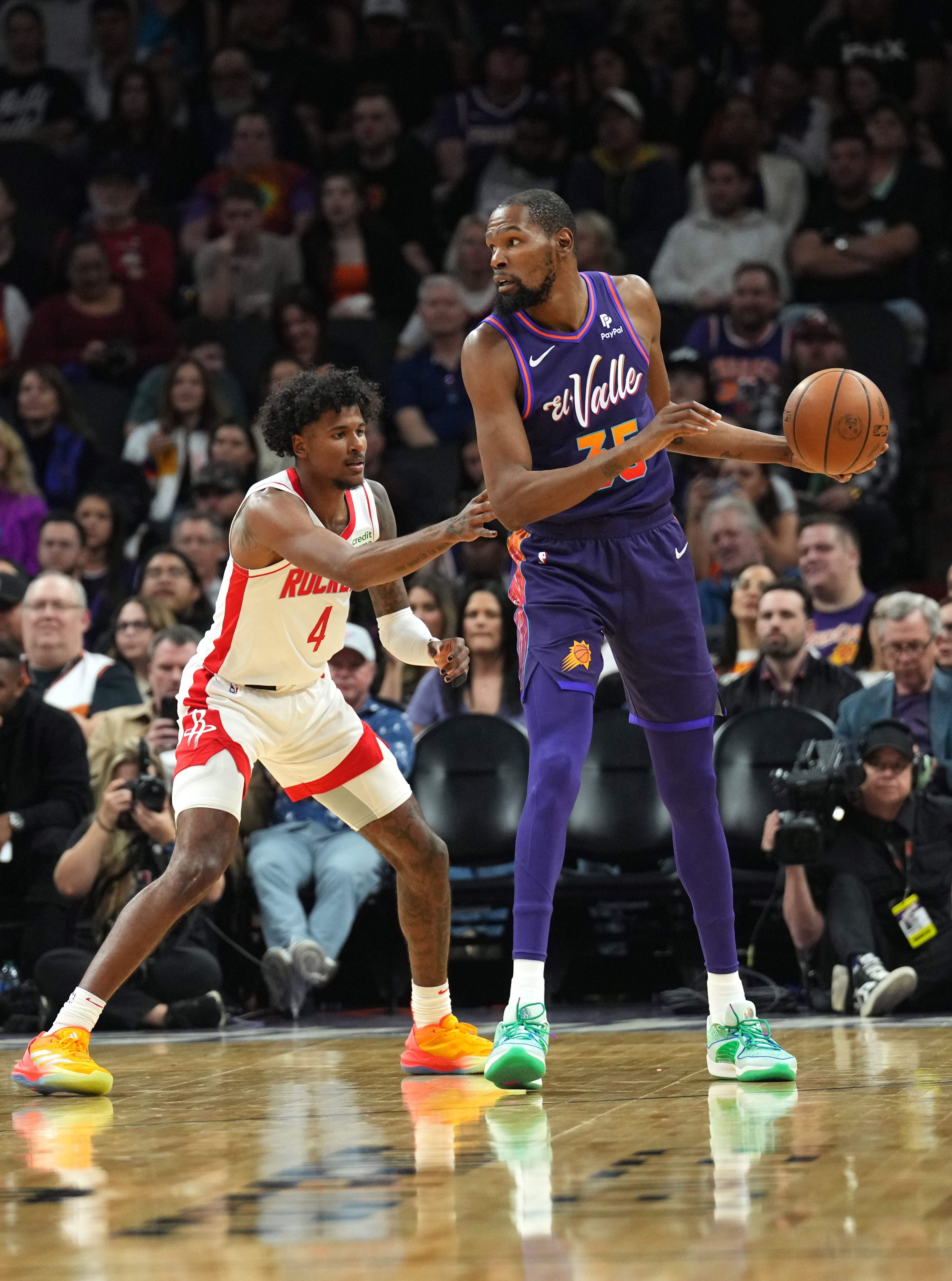 賽季至今,杜蘭特為太陽出戰(zhàn)53場(chǎng)常規(guī)賽,場(chǎng)均攻下26.8分6.2籃板4.3助攻1.3蓋帽。