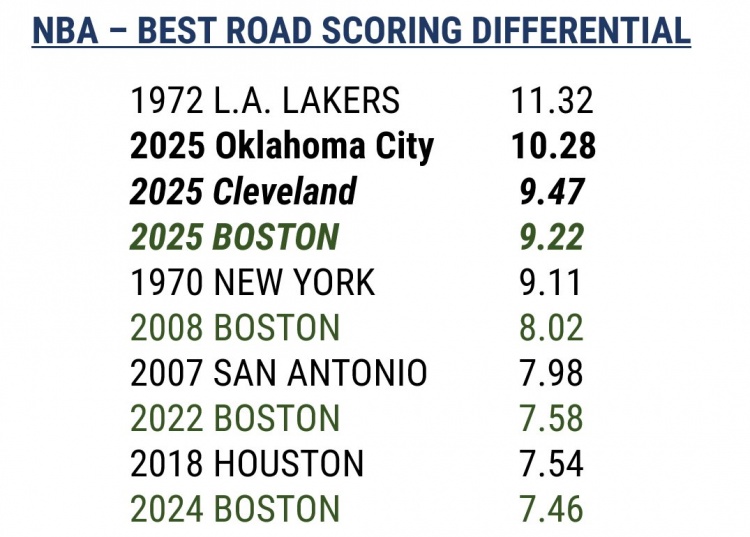 發(fā)布時(shí)間:2025年03月15日 12:00點(diǎn)擊:欄目:籃球新聞 3月15日訊 今天多場NBA比賽結(jié)束,綠軍客場勝熱火、騎士客勝灰熊。據(jù)統(tǒng)計(jì),NBA歷史單賽季客場比賽場均凈勝分排行榜如下:1、1972年湖人,11.32分2、今年雷霆,10.28分3、今年騎士,9.47分4、今年凱爾特人,9.22分 除特別注明外,本站所有內(nèi)容均為九球直播整理排版,轉(zhuǎn)載請(qǐng)注明出處:歷史單賽季客戰(zhàn)場均凈勝分榜:72年湖人第一 今年雷騎綠有望沖擊 本文標(biāo)簽: 籃球 nba 湖人 雷霆 凱爾特人 騎士