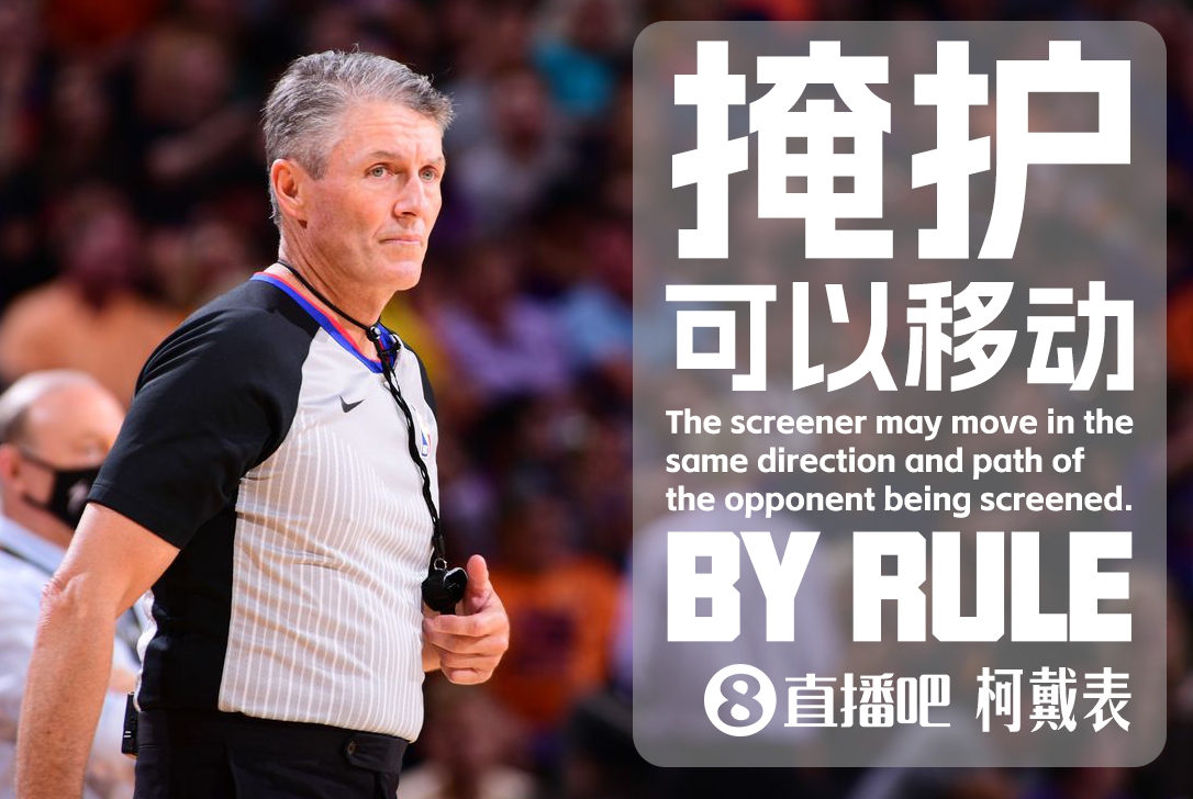 但是,移動掩護并不一定就是犯規(guī)——我們之前科普過NBA的掩護定義——掩護,是一名球員在沒有使用不適當?shù)膭幼鲿r,去延誤或者阻止對手去到他想去的地方的合法動作,掩護人可以移動(在對手被掩護的同一個方向或者路徑上),但不可以用這個移動去擊打對手(A screen is the legal action of a player who, without causing undue contact, delays or prevents an opponent from reaching a desired position.The screener may move in the same direction and path of the opponent being screened.)。