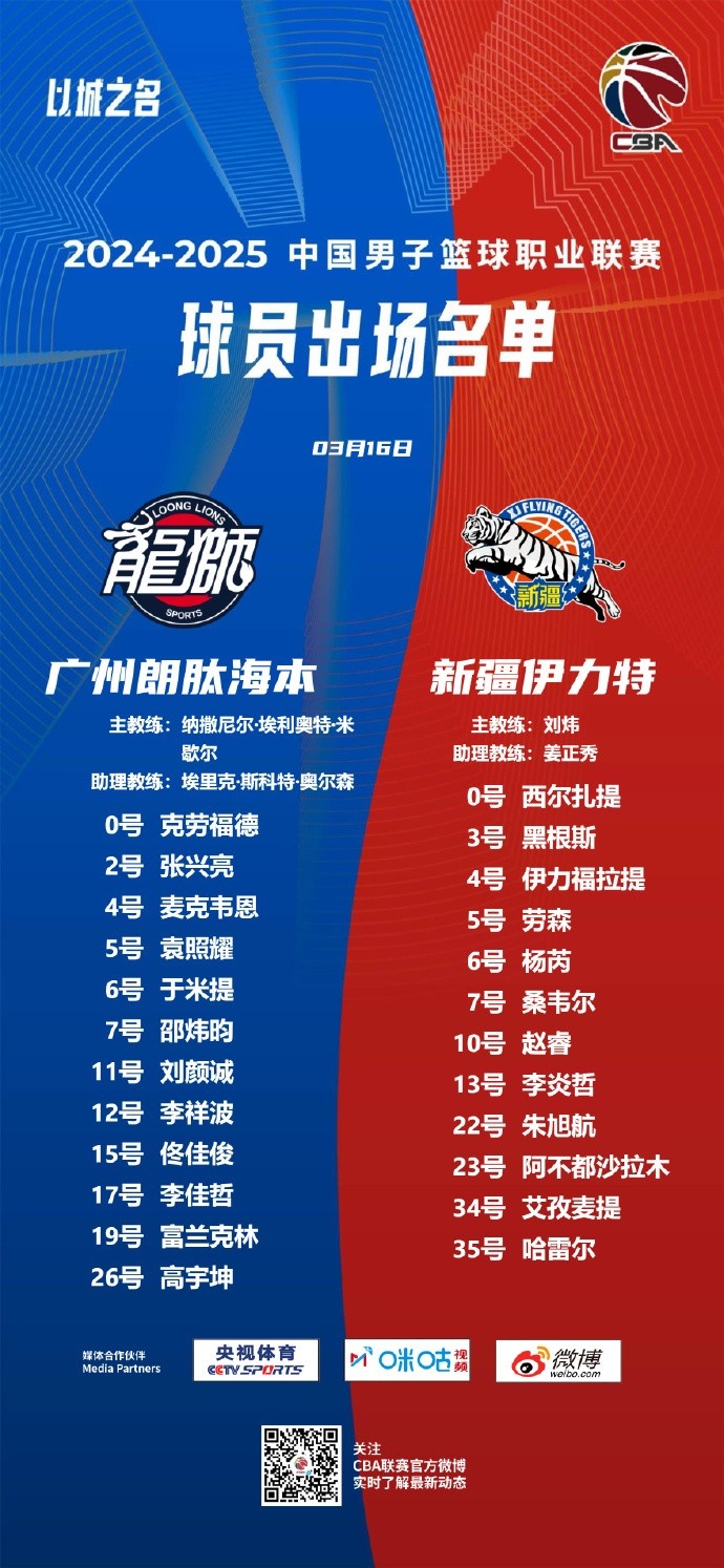 發(fā)布時間:2025年03月16日 19:57點擊:欄目:籃球新聞 3月16日訊 今晚7點35分,新疆男籃將在客場挑戰(zhàn)廣州男籃。兩隊本場比賽的大名單已經(jīng)出爐,具體如下:新疆隊:西爾扎提、黑根斯、伊力福拉提、勞森、楊芮、桑韋爾、趙睿、李炎哲、朱旭航、阿不都沙拉木、艾孜麥提、哈雷爾。廣州隊:克勞福德、張興亮、麥克韋恩、袁照耀、于米提、邵煒昀、劉顏誠、李祥波、佟佳俊、李佳哲、富蘭克林、高宇坤。 除特別注明外,本站所有內(nèi)容均為九球直播整理排版,轉(zhuǎn)載請注明出處:新疆隊VS廣州隊大名單:哈雷爾在列 齊麟缺陣 趙睿&阿不都領(lǐng)銜 本文標(biāo)簽: 籃球 CBA 中國籃球 新疆 廣州