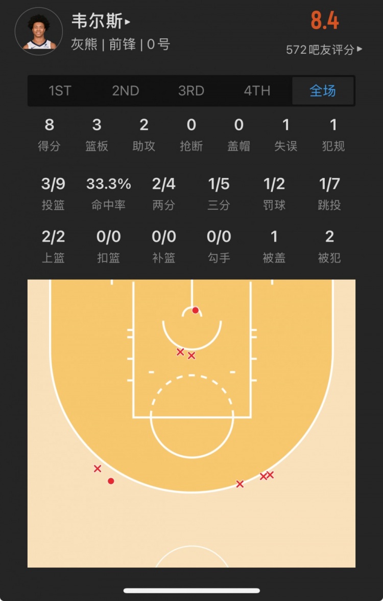 灰熊39號秀 杰倫-韋爾斯 登場26.1分鐘