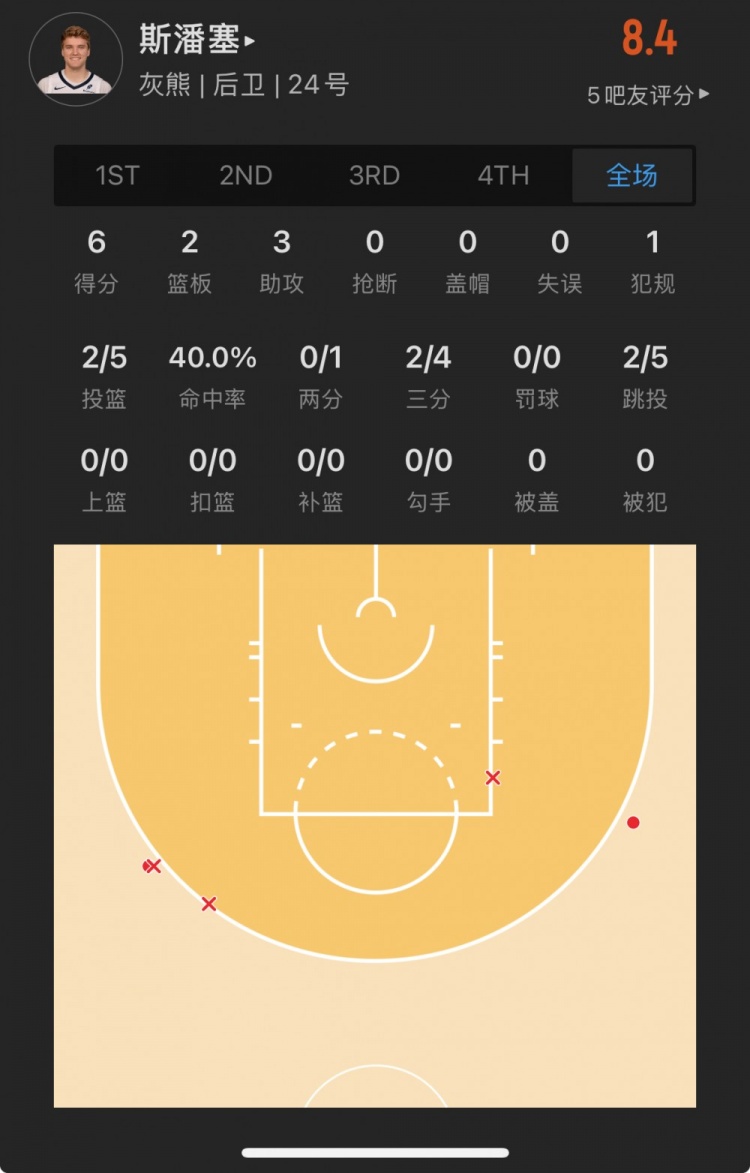 灰熊53號秀 卡梅隆-斯潘塞 登場18.0分鐘