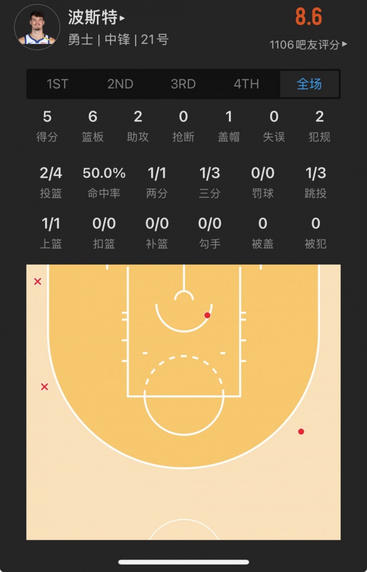 勇士52號秀 昆滕-波斯特 登場19.4分鐘
