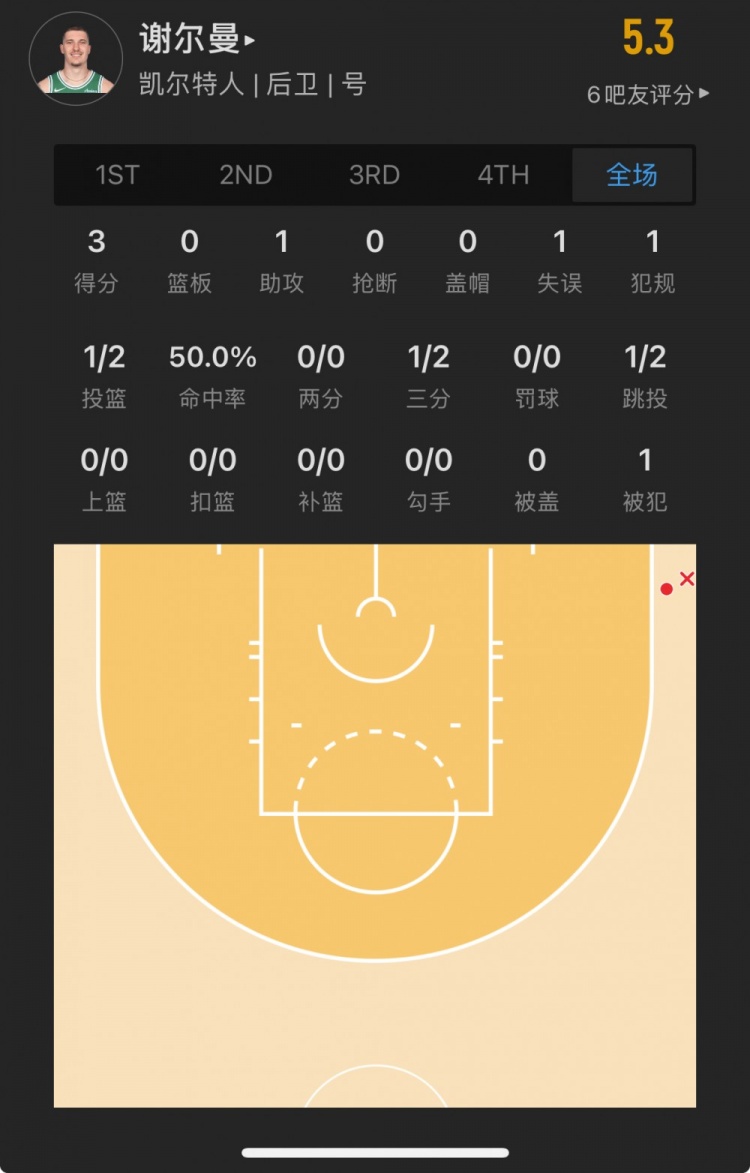 凱爾特人30號秀 貝勒-謝爾曼 登場10.8分鐘