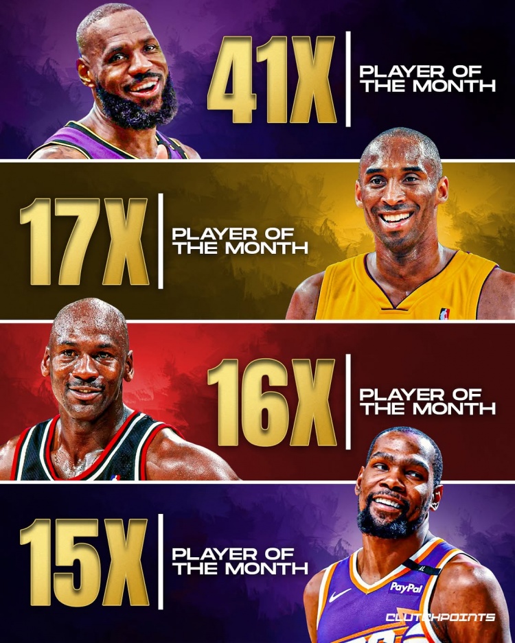 發(fā)布時(shí)間:2025年03月17日 08:57點(diǎn)擊:欄目:籃球新聞 除特別注明外,本站所有內(nèi)容均為九球直播整理排版,轉(zhuǎn)載請(qǐng)注明出處:詹姆斯41次月最佳歷史斷檔第一 科比17次第二 喬丹16第三KD15第四 本文標(biāo)簽: 籃球 nba 湖人 詹姆斯 太陽 公牛 科比 喬丹 杜蘭特