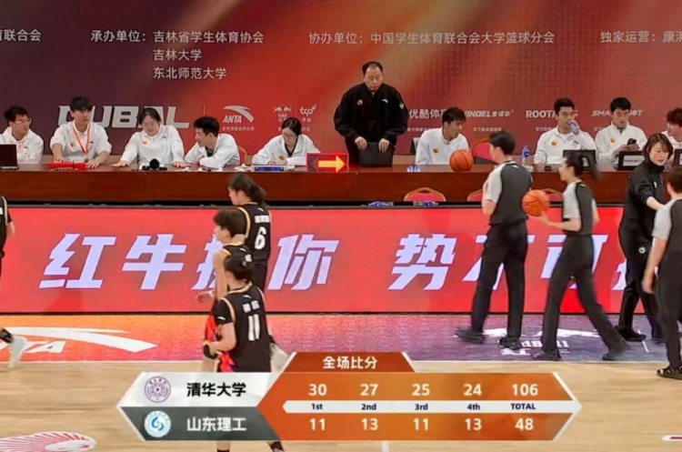 末節(jié)決戰(zhàn),王鏝淋接連5分直接拉開50分以上領(lǐng)先,山東理工受到體力影響半節(jié)多僅得2分,清華大學(xué)17-2攻擊波繼續(xù)擴(kuò)大到60分以上領(lǐng)先優(yōu)勢。張喬雨罰球終于止住頹勢,程清娜補(bǔ)籃也命中,時(shí)間越來越少但山東理工始終不放棄,王虹壓哨中投命中,最終清華大學(xué)106-48大勝山東理工,闖入決賽。