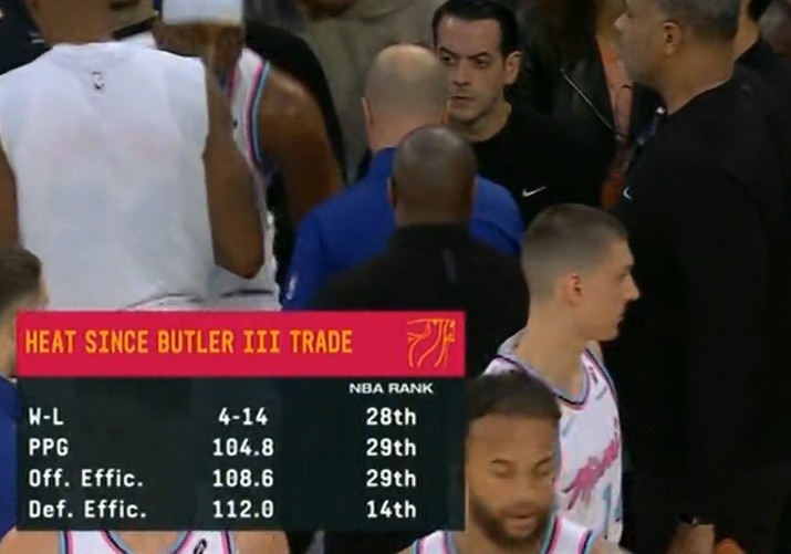 發(fā)布時間:2025年03月18日 10:58點擊:欄目:籃球新聞 3月18日訊 今日NBA常規(guī)賽,熱火客場挑戰(zhàn)尼克斯。據(jù)統(tǒng)計,自從巴特勒交易后熱火取得了4勝14負的戰(zhàn)績,排名聯(lián)盟倒數(shù)第3,期間場均得到104.8分、進攻效率108.6均排名聯(lián)盟倒二,防守效率112.0排名聯(lián)盟第14。 除特別注明外,本站所有內容均為九球直播整理排版,轉載請注明出處:交易巴特勒后熱火4-14 期間場均104.8分進攻效率108.6均倒二 本文標簽: 籃球 nba 勇士 熱火 巴特勒
