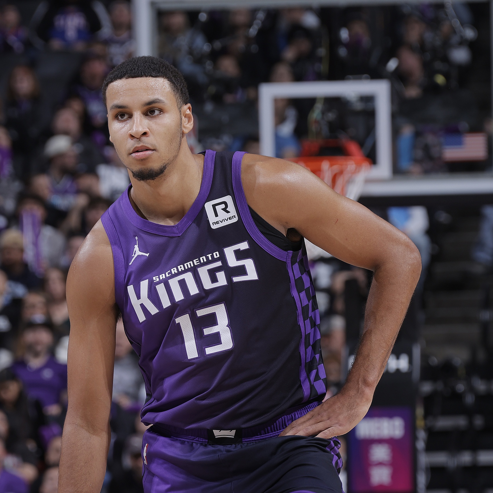 此役,基根-穆雷在攻防兩端都有穩(wěn)定發(fā)揮。他出戰(zhàn)34分鐘,14投6中,三分8中3,罰球1中1,得16分10板2斷。