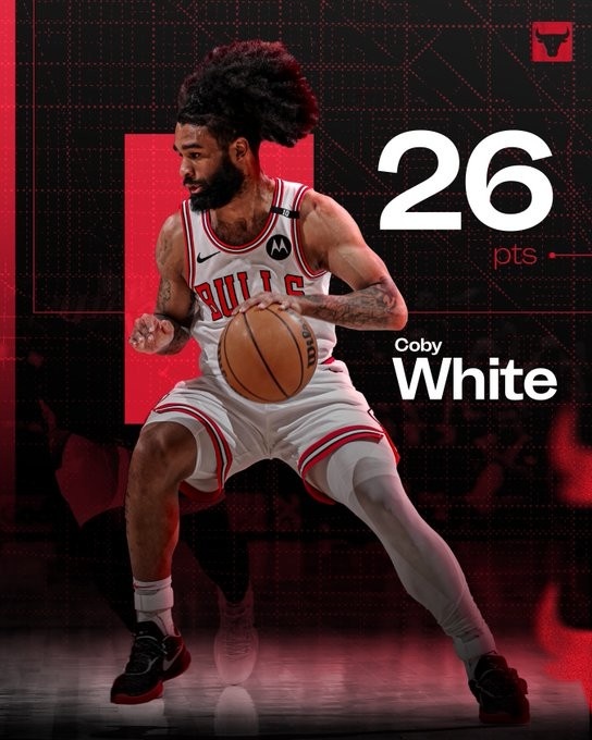 公牛官方發(fā)布數(shù)據(jù),這是懷特連續(xù)第九場(chǎng)砍下20+,是其職業(yè)最長連續(xù)20+新紀(jì)錄。