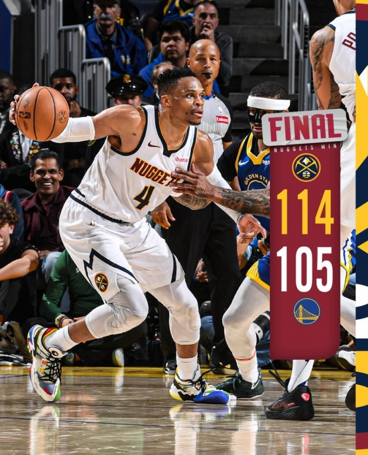 發(fā)布時間:2025年03月18日 13:58點擊:欄目:籃球新聞 3月18日訊 NBA常規(guī)賽,掘金在客場以114-105擊敗勇士。此役,威少出戰(zhàn)42分鐘,17中5,三分9中2砍下12分11籃板(3前場籃板)16助攻的三雙,外加3搶斷2蓋帽,出現(xiàn)7次失誤,正負值+5。賽后,掘金官方曬出了贏球海報,威少登上封面。 除特別注明外,本站所有內(nèi)容均為九球直播整理排版,轉(zhuǎn)載請注明出處:三雙拿捏勇士!掘金官方曬贏球海報 威少榮登封面 本文標簽: 籃球 nba 掘金 威少
